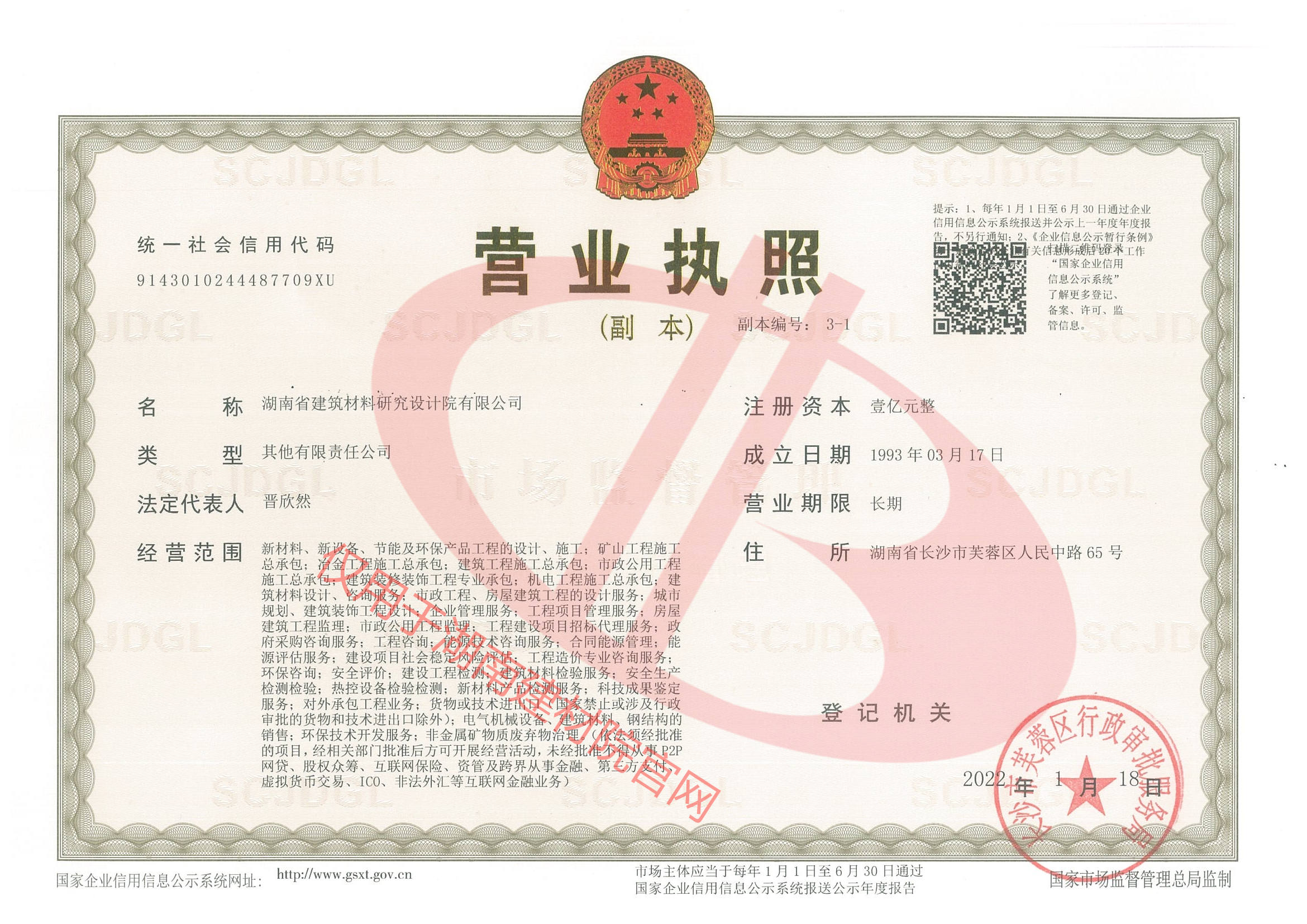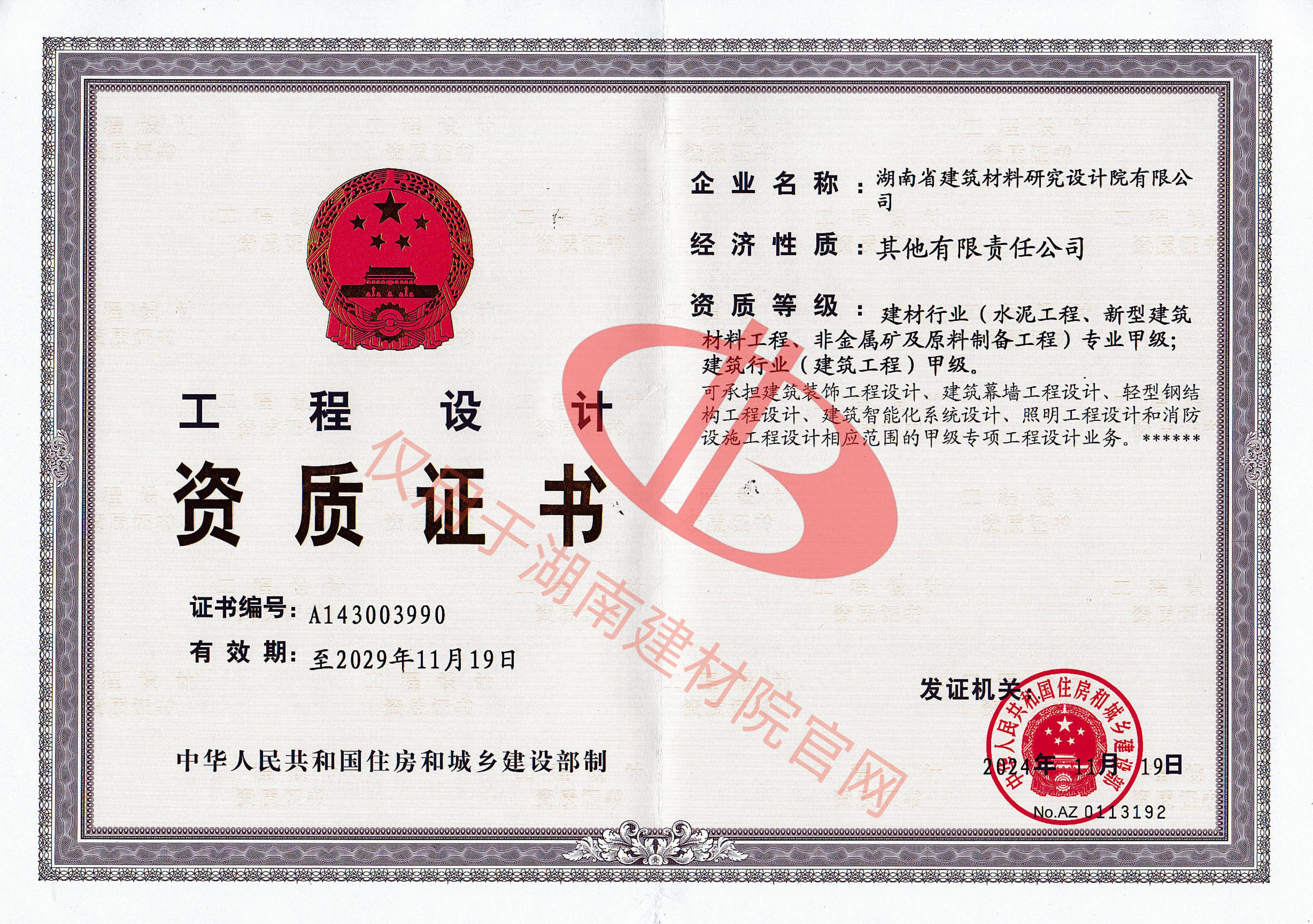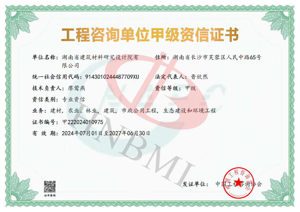 湖南省建筑材料研究設(shè)計(jì)院有限公司的前身為湖南省建筑材料研究設(shè)計(jì)院,成立于1958年,是1993年全國首批榮獲國家建材行業(yè)設(shè)計(jì)、工程總承包甲級資質(zhì)的四個(gè)科研設(shè)計(jì)單位之一。