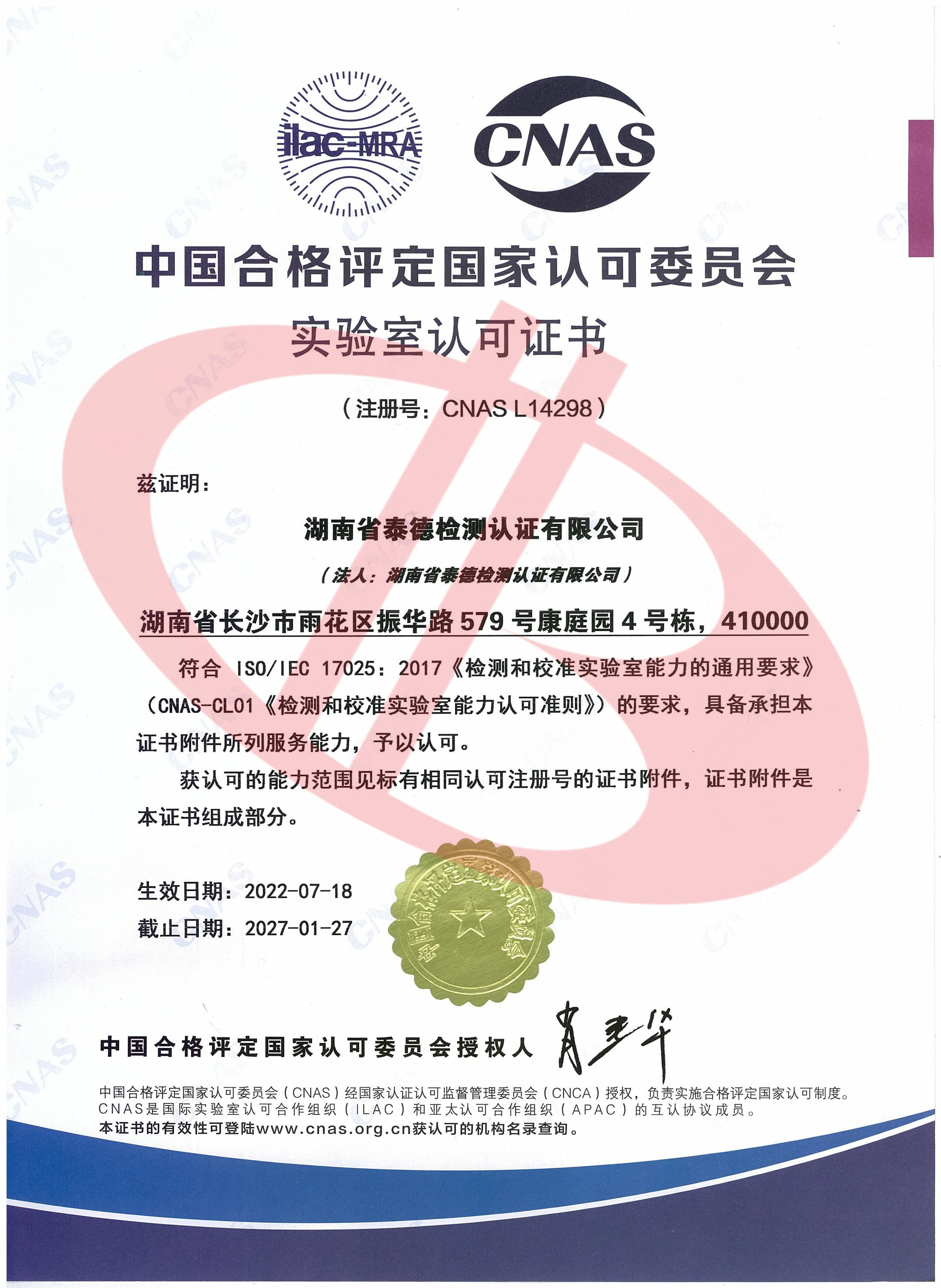 泰德檢驗(yàn)檢測資質(zhì)證書
